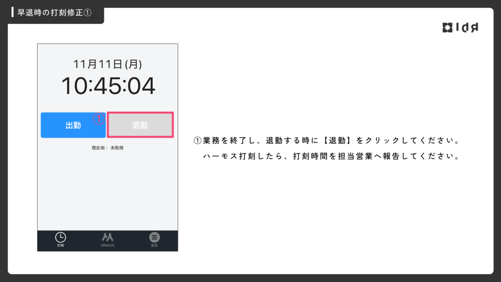 現場を退勤する際、退勤時間を担当営業へ報告してください。