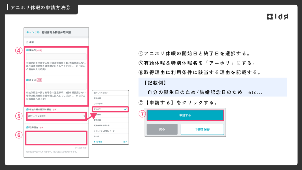 アニホリ休暇の取得方法
